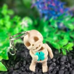 Luck and charm with a spooky twist! This 3D printed mini skeleton holding a vibrant green clover is the perfect good-luck charm for your keys, desk, or collection. Durable, lightweight, and full of personality!